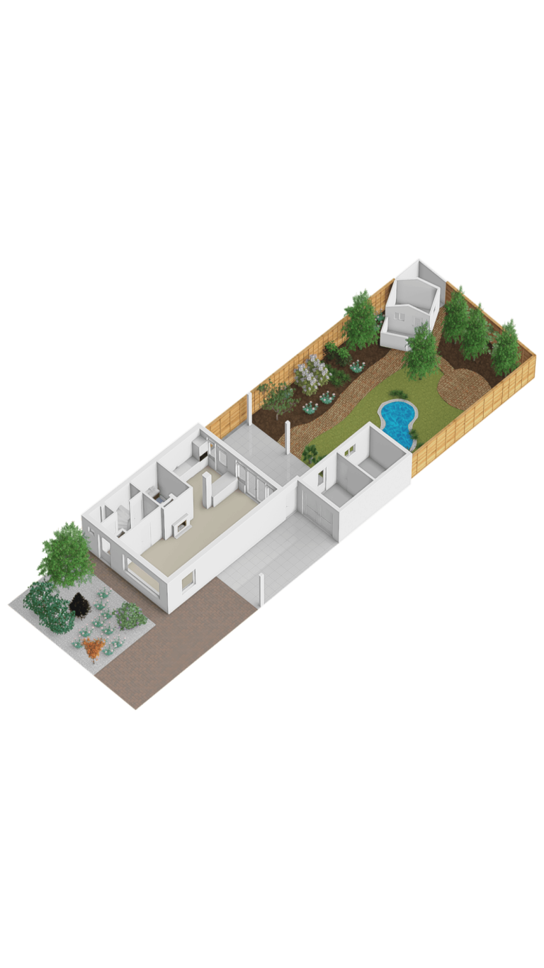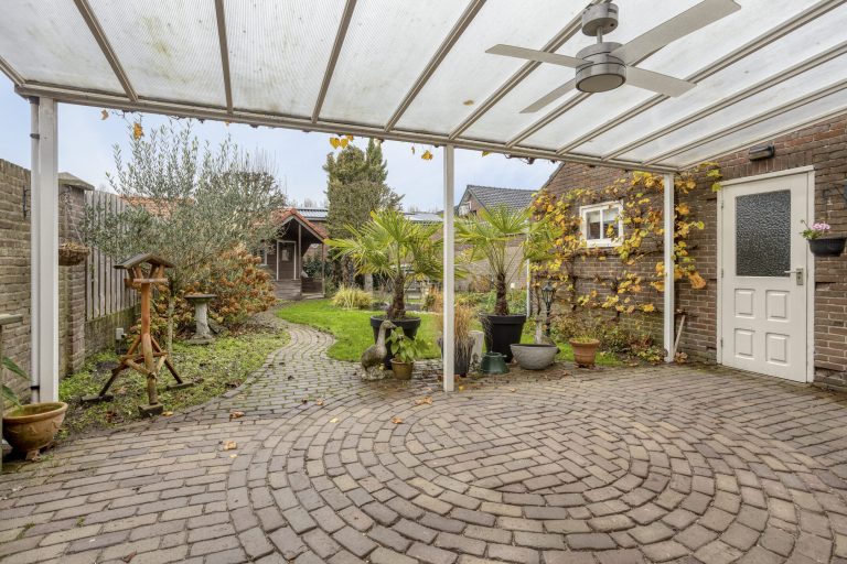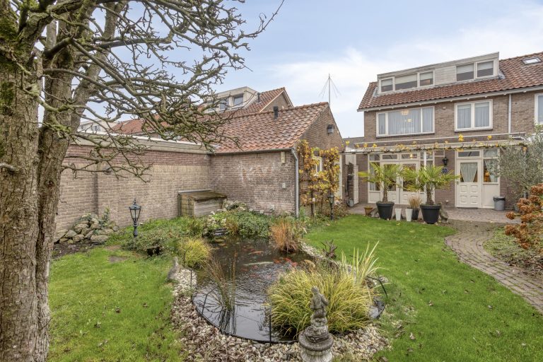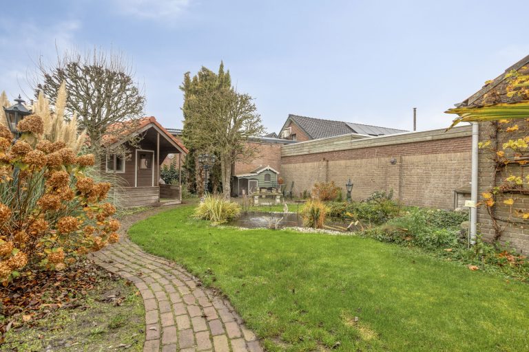 Buiten wacht een echte verrassing: een uitzonderlijk diepe en royale achtertuin die je zelden tegenkomt. Deze tuin is een echte eyecatcher en voelt als een rustige oase waar je iedere dag van kunt genieten. Een mooi gazon, meerdere terrassen, een vijver, sfeervolle tuinverlichting en een overkapping zorgen voor een ontspannen en natuurlijke omgeving. De tuin is volledig afgesloten en via de achterom bereikbaar, waardoor privacy en gemak gewaarborgd zijn.