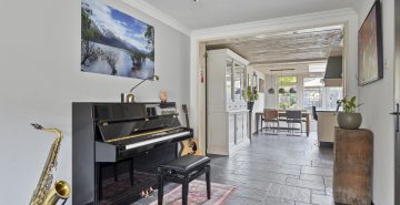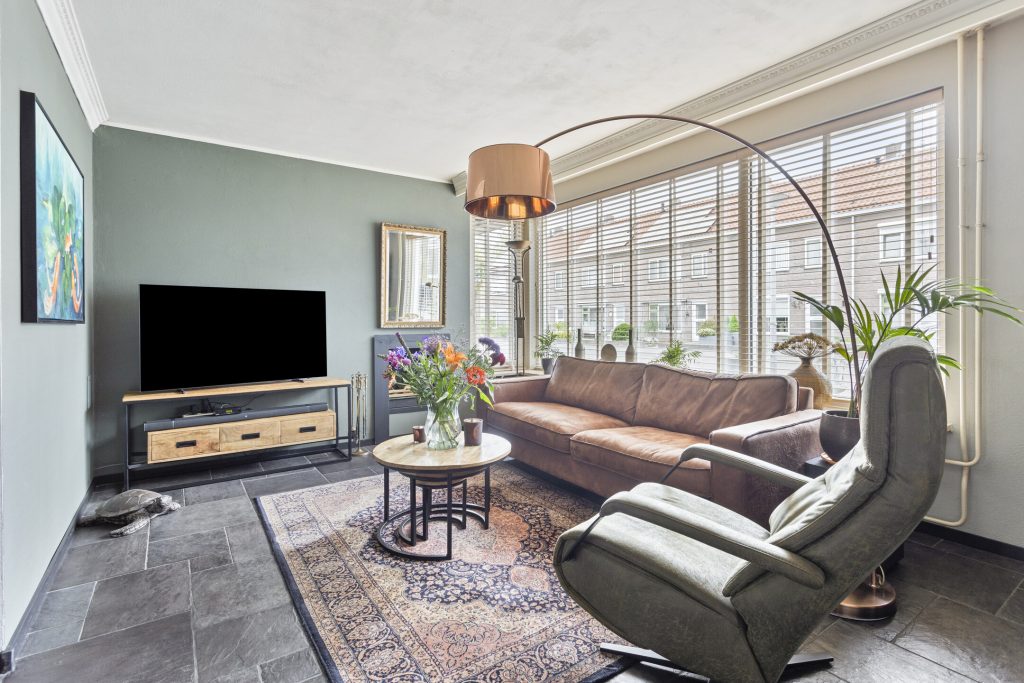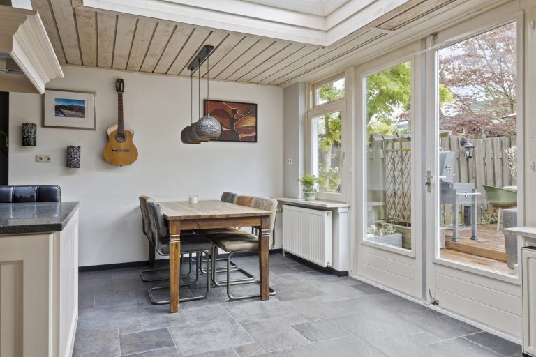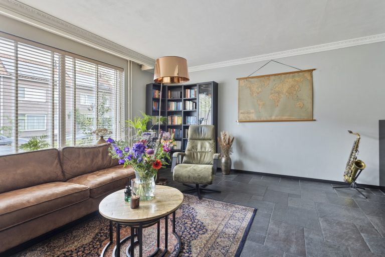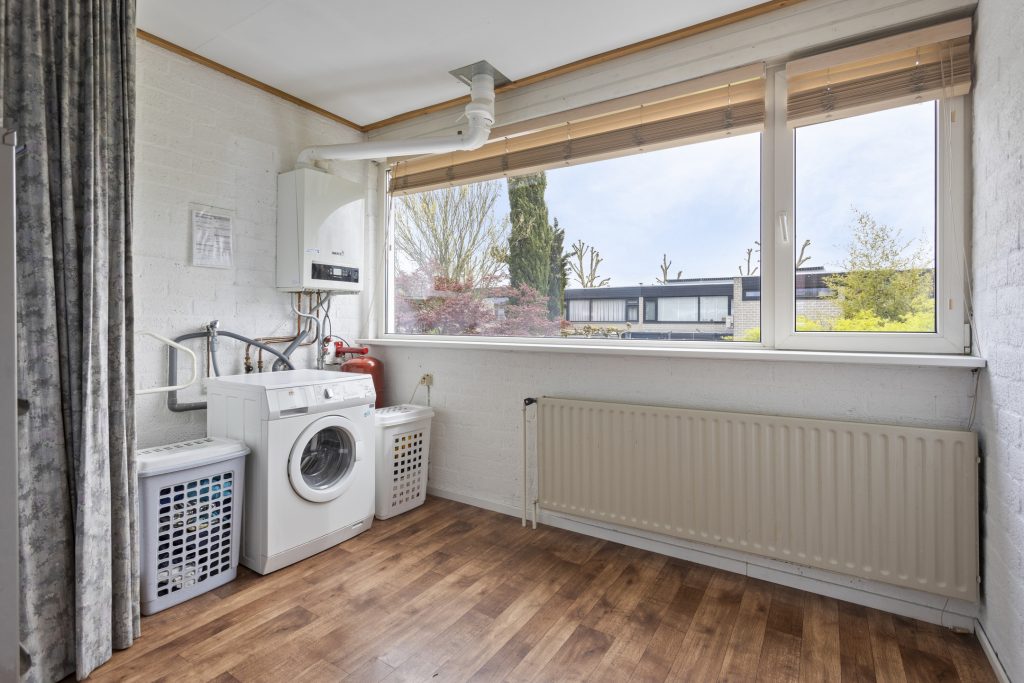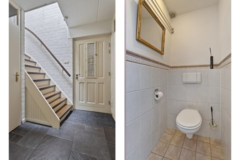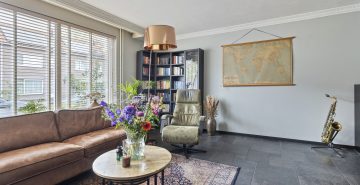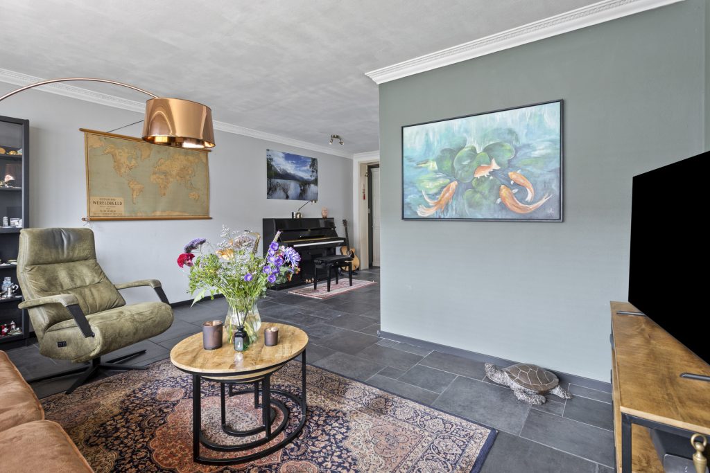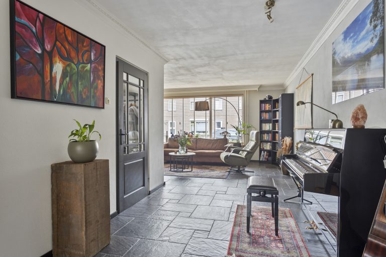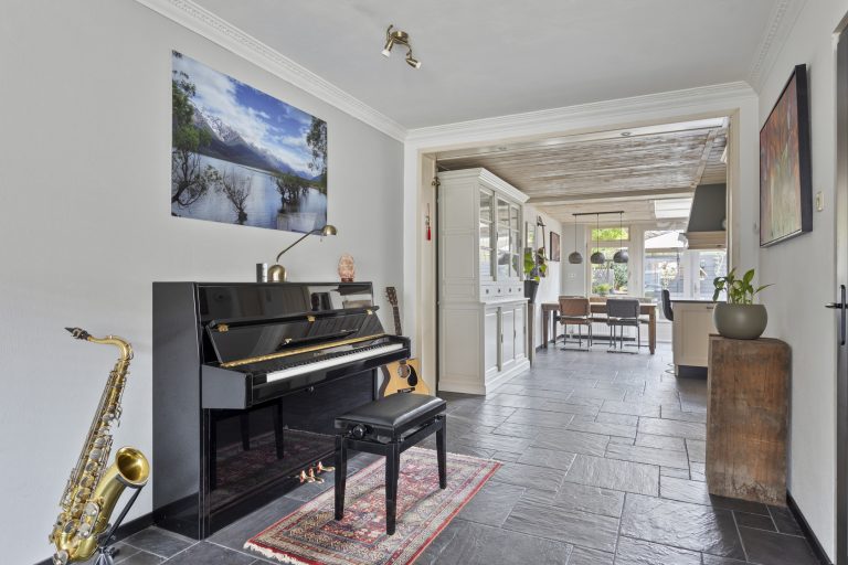 Bij binnenkomst valt het meteen op: de woning is goed onderhouden en alles voelt verzorgd. In de hal vind je de vernieuwde meterkast (2013) en een nette toiletruimte. Vanuit de hal loop je de ruime, L-vormige woonkamer in – een fijne plek waar je je direct op je gemak voelt. De open haard zorgt voor extra sfeer op koude dagen en de openslaande deuren naar de tuin brengen in de zomer het buitenleven naar binnen.
