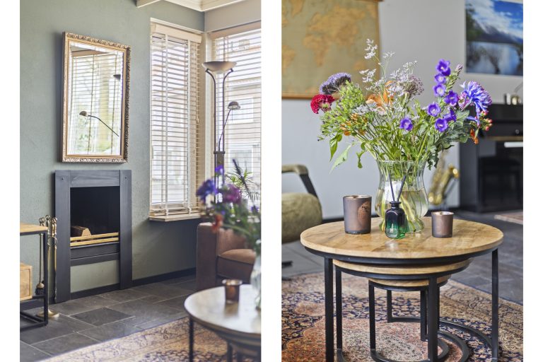 – L-vormige woonkamer met open haard en openslaande tuindeuren