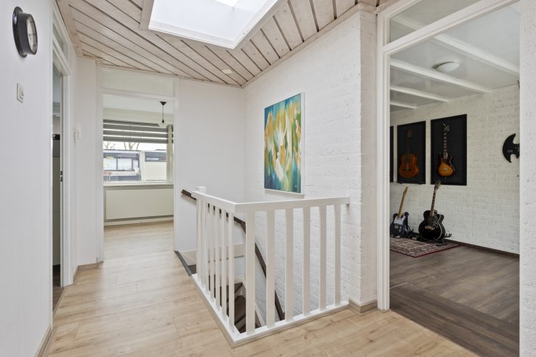Boven vind je vier ruime slaapkamers, allemaal lekker licht en goed van formaat. De badkamer is praktisch ingericht met een ligbad, toilet en een wastafel met meubel.