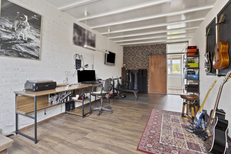 De inpandige garage – met elektrische deur – biedt volop ruimte voor fietsen, een motor of hobbyspullen. En de carport zorgt ervoor dat je auto altijd droog staat.