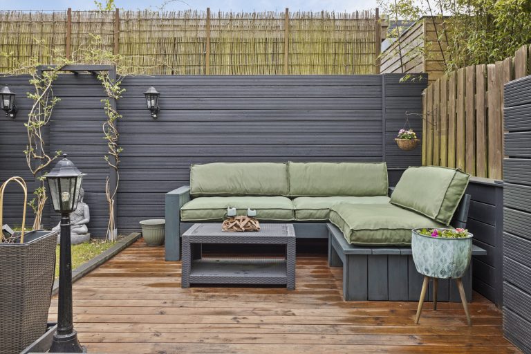 – De achtertuin is gelegen op het zuiden en is geheel afgescheiden