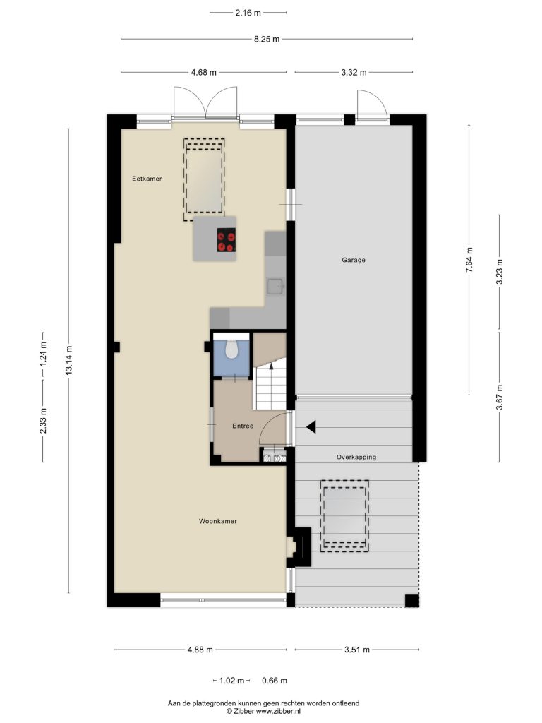 – De carport grenst aan de garage