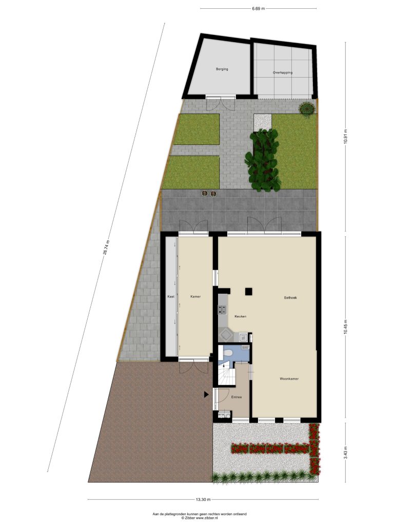 – Achtertuin op het zuidoosten, achterom bereikbaar