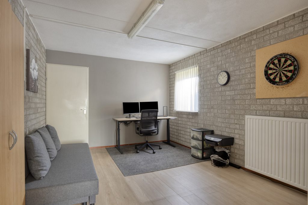 De begane grond is voorzien van vloerverwarming, wat voor een aangenaam wooncomfort zorgt. De royale woonkamer biedt een fijne plek aan zowel het eet- als het zitgedeelte en heeft een schuifpui naar de achtertuin. De gesloten keuken is uitgerust met diverse inbouwapparatuur, zoals een inductiekookplaat, combi-oven, vaatwasser, koelkast, Quooker en heeft een praktische kelderkast. Een functionele, nette en lichte plek om te koken en samen te zijn. Daarnaast bevindt zich op de begane grond nog een praktische bijkeuken met toiletruimte, een berging en een speel-/kantoor-/slaapkamer.