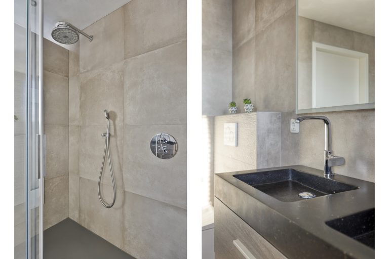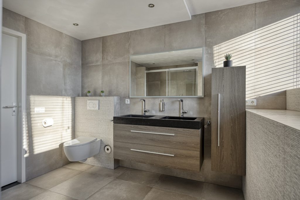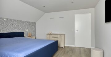Op de eerste verdieping vind je een complete badkamer met onder andere een royale inloopdouche met sunshower, dubbele wastafel, zwevend toilet en vloerverwarming. Een plek om ontspannen de dag te beginnen of af te sluiten. Daarnaast bevinden zich hier vier royale slaapkamers, ideaal voor een gezin, een thuiswerkplek of een logeerkamer.
