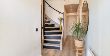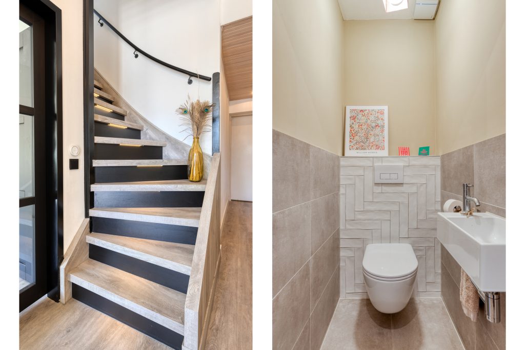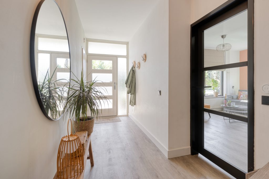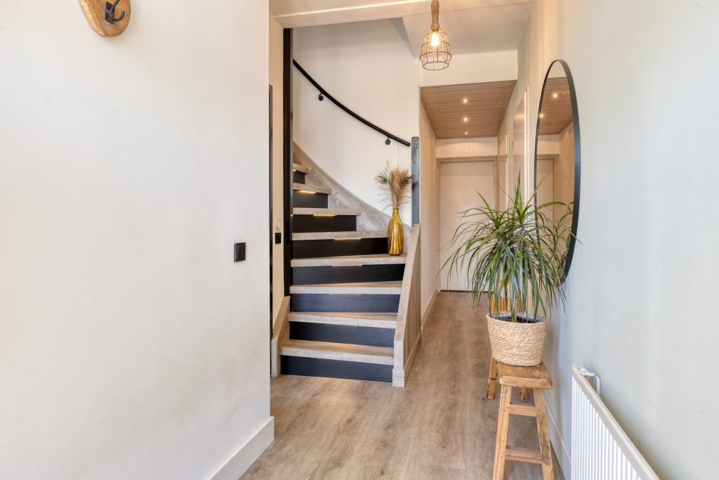 Bij aankomst valt direct de verzorgde uitstraling van de woning op. Eenmaal binnen wordt u verwelkomd in een ruime hal die toegang biedt tot de verschillende leefruimtes. Hier begint het gevoel van kwaliteit en rust dat in de gehele woning is doorgevoerd. De begane grond is in 2025 volledig vernieuwd en uitgebouwd, waarbij gekozen is voor een strakke afwerking met gestuukte wanden en plafonds, een moderne pvc-vloer en comfortabele vloerverwarming in de woonkamer en badkamer (op de begane grond).