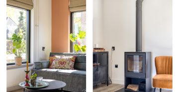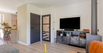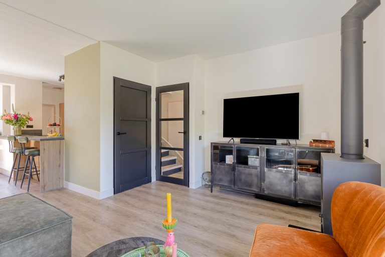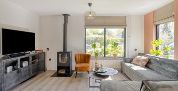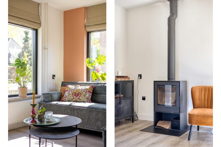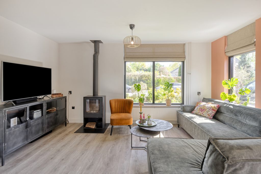 – Royale, lichte L-woonkamer met sfeervolle houtkachel