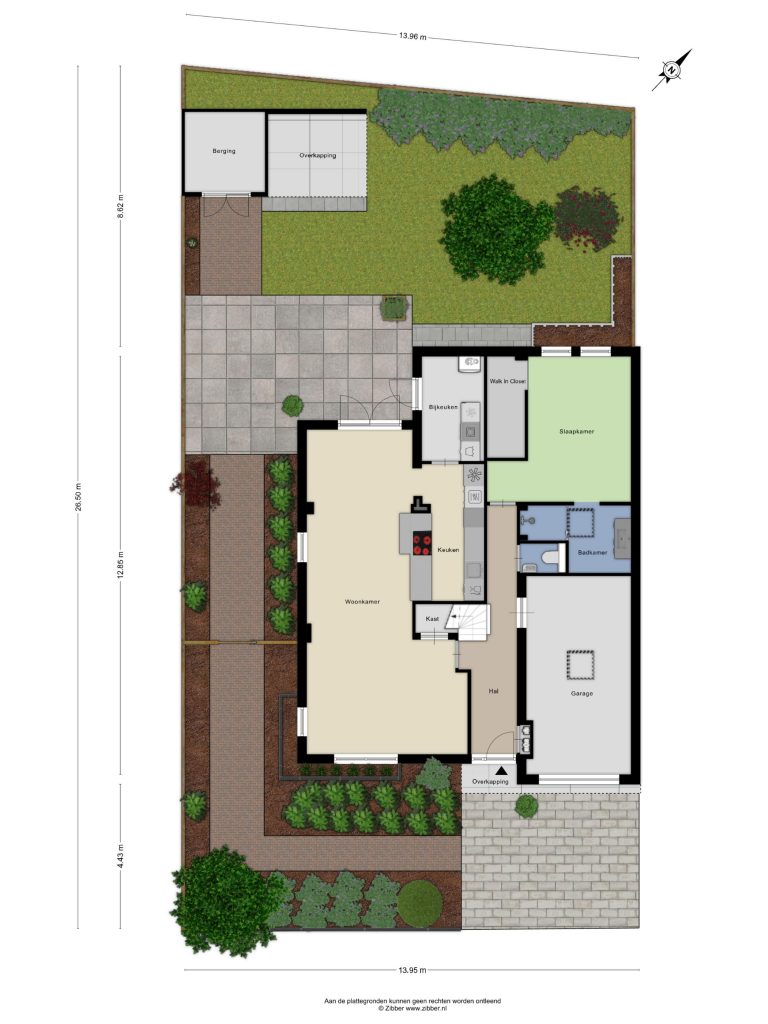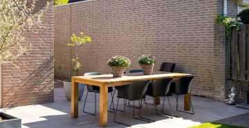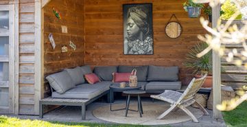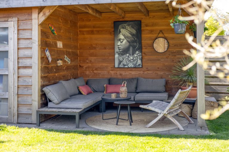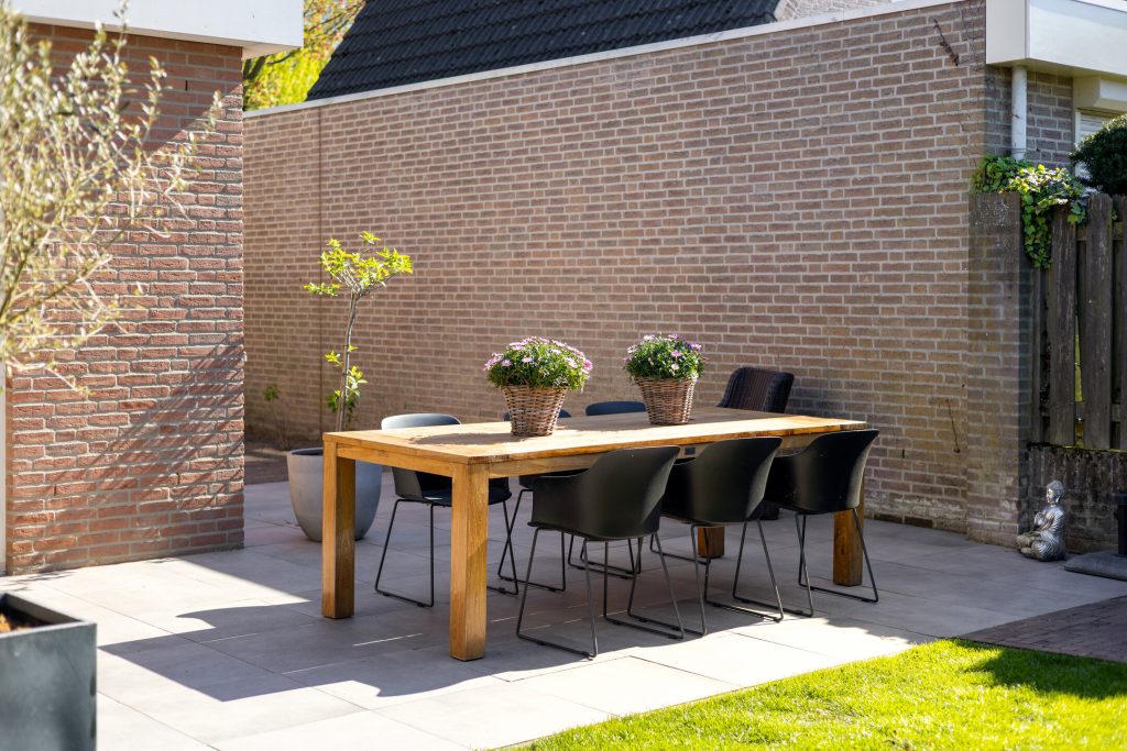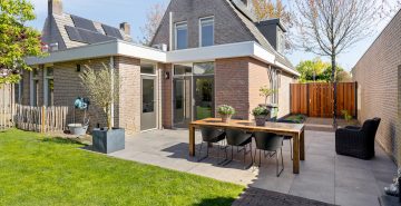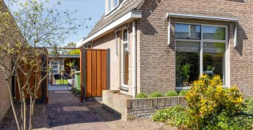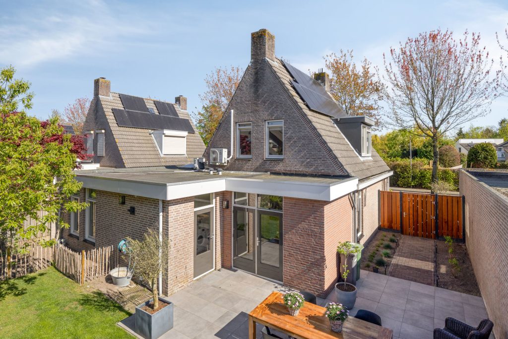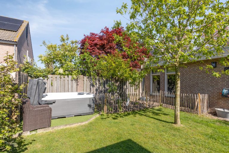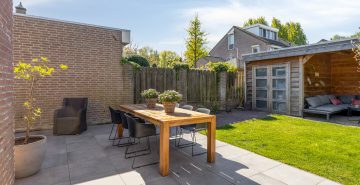 Ook buiten is het geheel met zorg aangelegd. De tuin, gelegen aan de zij- en achterzijde van de woning, biedt een fijne combinatie van gazon en terrassen, waardoor er altijd een plek is in de zon of juist in de schaduw. De overkapping (geplaatst in 2021) vormt een fijne beschutte plek om buiten te zitten. Daarnaast beschikt de tuin over een houten berging, een buitenkraan en een afsluitbare achterom.