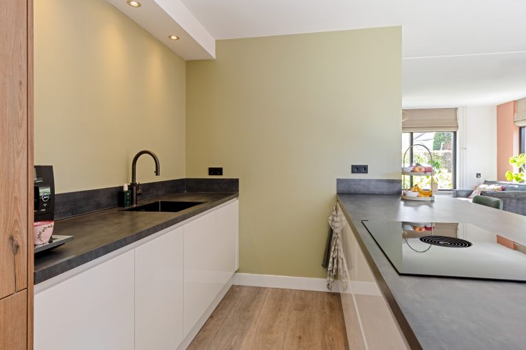 – Aangebouwde garage met elektrische deur, verwarming én luxe afwerking