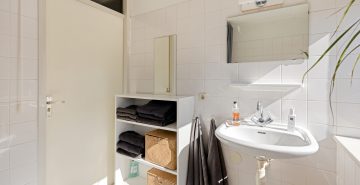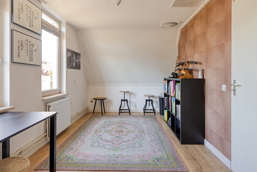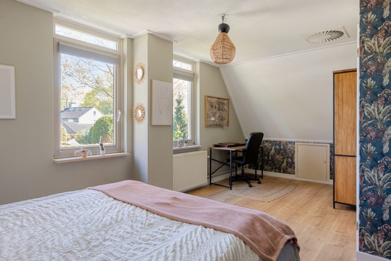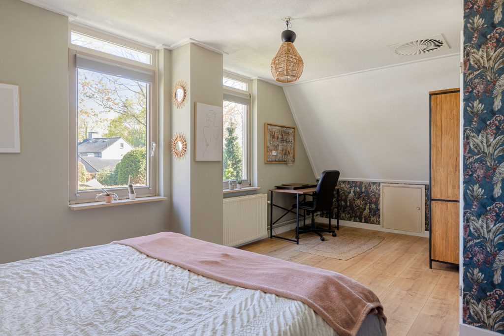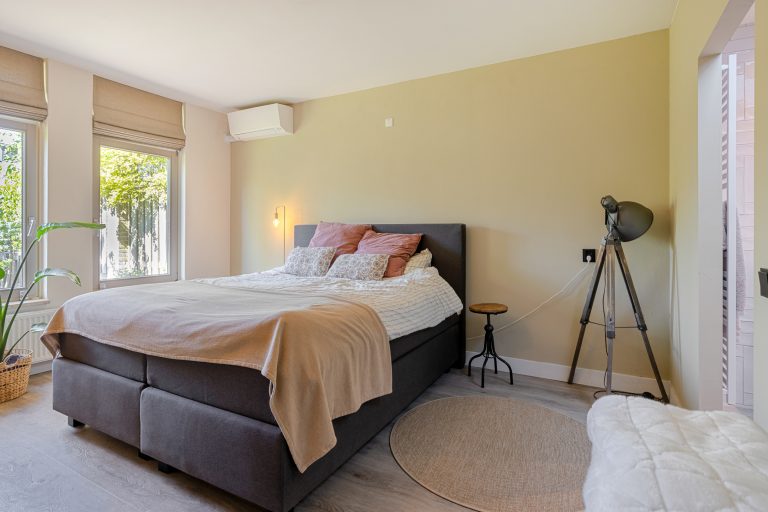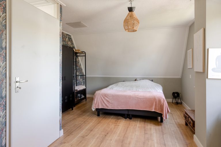 Op de eerste verdieping zet de ruimte zich moeiteloos voort. Hier bevinden zich momenteel twee royale slaapkamers, met de mogelijkheid om eenvoudig een derde slaapkamer te realiseren. Beide kamers zijn comfortabel en praktisch ingericht en profiteren van een aangenaam binnenklimaat dankzij het geïntegreerde aircosysteem. Daarnaast is er een tweede badkamer aanwezig met douche, toilet en wastafel. Via de overloop is met een vlizotrap de ruime bergzolder bereikbaar, ideaal voor extra opslag.