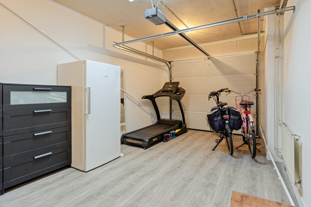 De woning beschikt bovendien over een aangebouwde garage, bereikbaar zowel van buitenaf via een elektrische garagedeur als binnendoor. Deze ruimte is voorzien van elektra, verwarming en een lichtkoepel en is bovendien keurig afgewerkt met een laminaatvloer en gestucte wanden, waardoor deze zich uitstekend leent voor meerdere doeleinden.