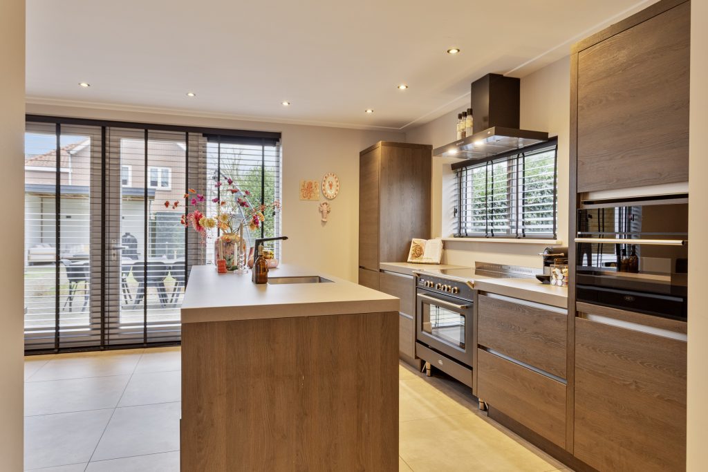 – Royale leefkeuken met spoeleiland en luxe inbouwapparatuur