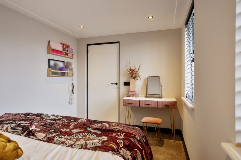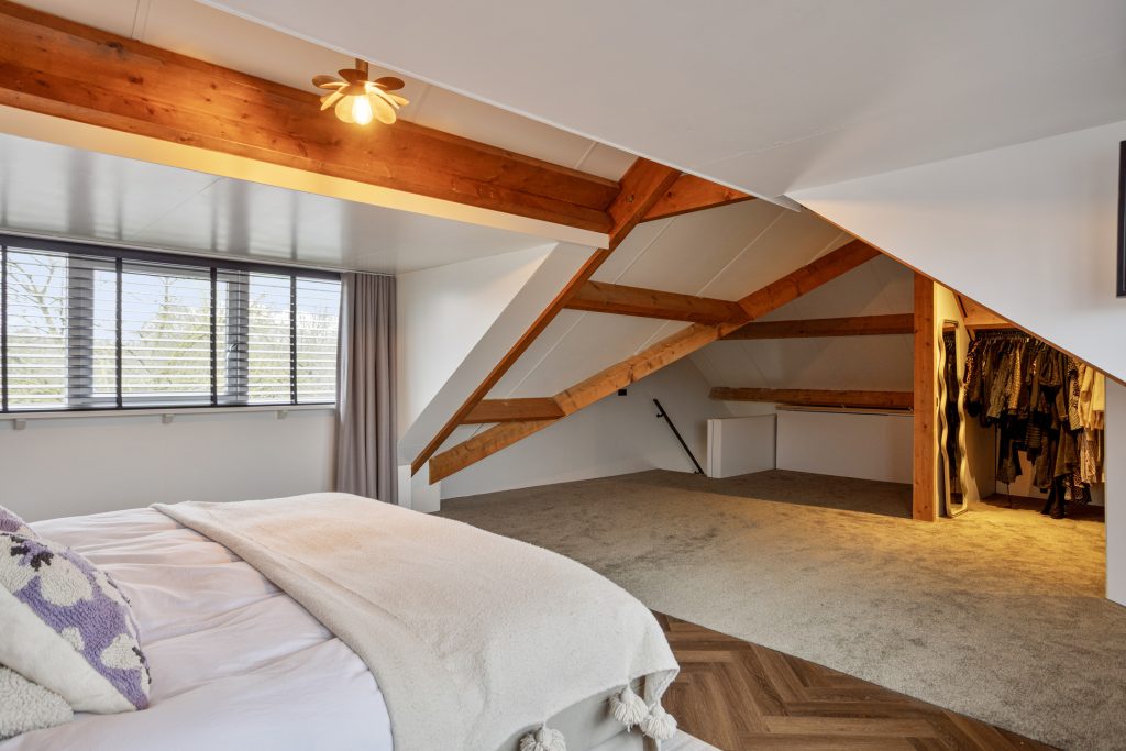 De tweede verdieping is bereikbaar via een vaste trap. Deze verdieping is voorzien van twee dakkapellen, wat zorgt voor extra ruimte en licht. Hier bevindt zich de vijfde slaapkamer, die door het hoge plafond en de royale opzet bijzonder ruim aanvoelt. Daarnaast is er een grote walk-in closet, in 2025 nieuw gerealiseerd. In 2023 is op deze verdieping tevens een airco geplaatst.