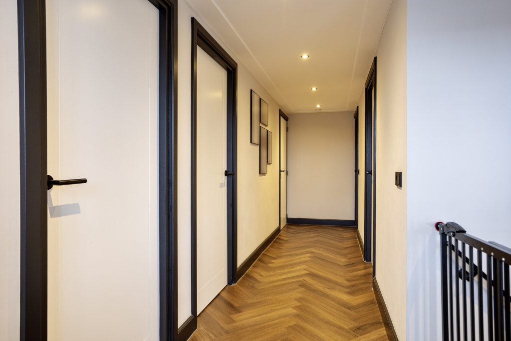De wanden en plafonds zijn strak gestuct, de begane grond en verdieping zijn voorzien van een moderne pvc-vloer én vloerverwarming. Daarnaast is er mooie raambekleding toegepast en inbouwspots in elke ruimte. Kortom, instapklaar voor de nieuwe eigenaar!