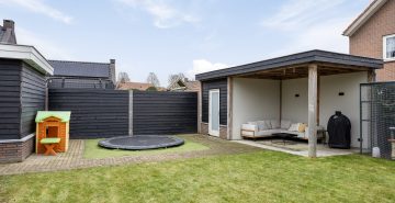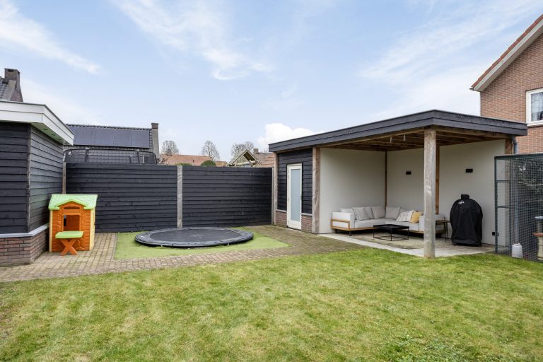 – Diepe, zonnige achtertuin op het zuiden met berging en overkapping