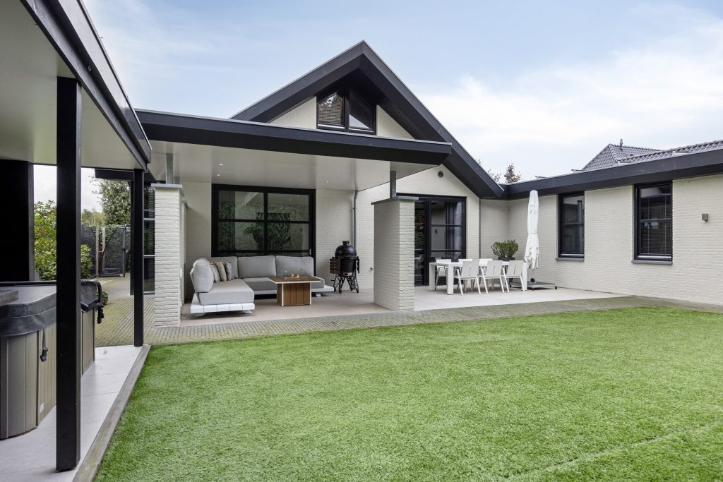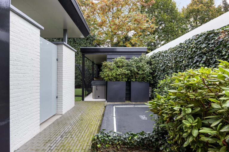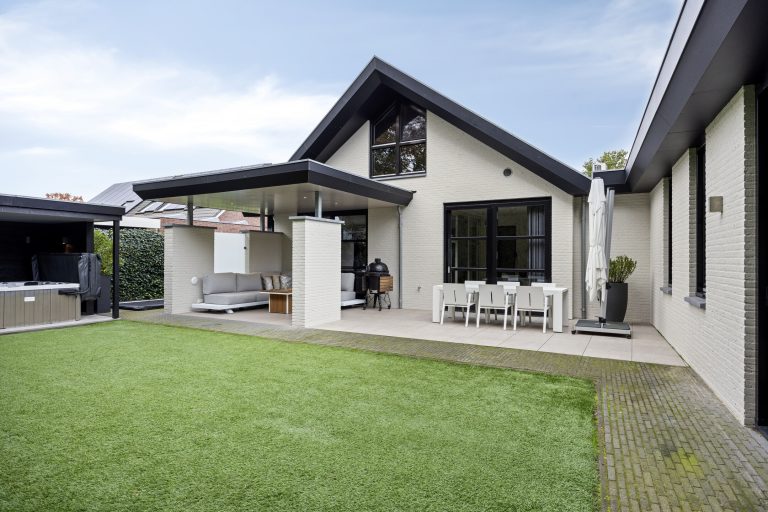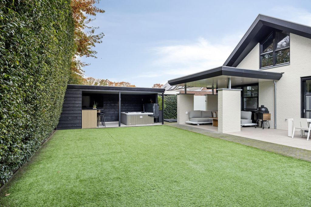 De fraai aangelegde achtertuin ligt op het zuiden en biedt dankzij de diverse zitgedeeltes, deels overdekt en verhard, volop mogelijkheden om in alle seizoenen van het buitenleven te genieten. Met kunstgras, fraaie bestrating en voldoende groen is de tuin onderhoudsvriendelijk én sfeervol. De tuin is volledig omheind, achterom bereikbaar en voorzien van tuinverlichting. Hier geniet u in alle rust en privacy van uw eigen stukje paradijs.