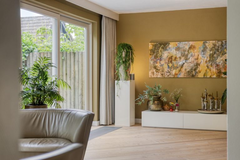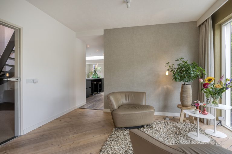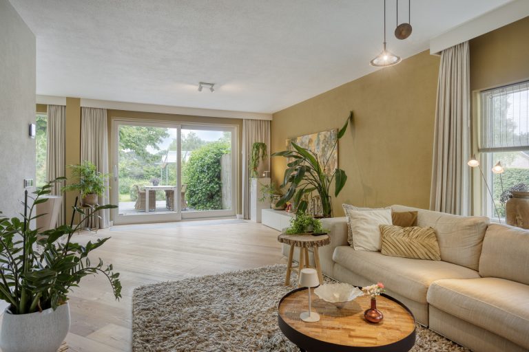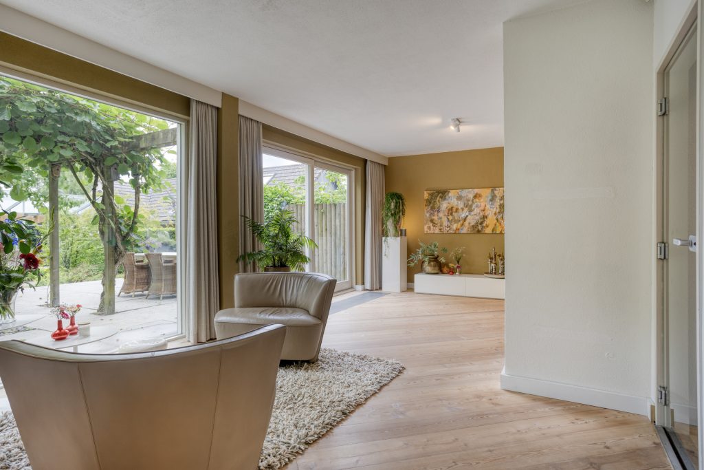 – Zeer royale L-vormige woonkamer met zeer veel lichtinval en schuifpui naar de tuin
