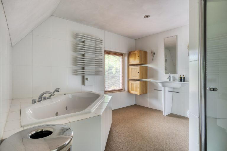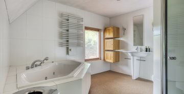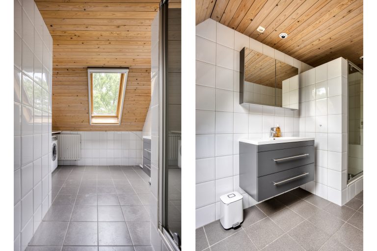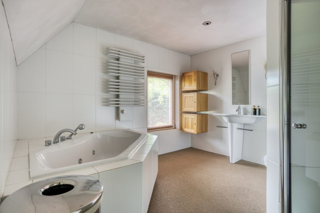 – Twee royale badkamers, waarvan één is uitgerust met een ligbad, een douchecabine, een toilet en een wastafel met badmeubel. De andere badkamer is voorzien van een inloopdouche met wastafel.