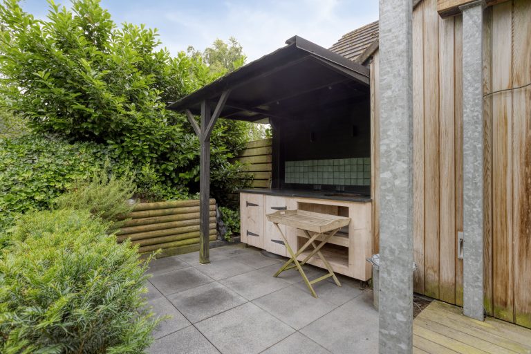 Het bijgebouw is een ware verrassing: een combinatie van praktisch en recreatief. Naast een garage en berging vind je hier een gezellige bar met keuken, een eigen badkamer en toiletruimte, openslaande deuren naar de tuin én een sfeervolle overkapping – perfect voor lange zomeravonden. Bovenin het bijgebouw zijn ook nog eens twee extra slaapkamers gerealiseerd, ideaal als gastenverblijf, kantoor, atelier of voor een mogelijkheid tot een mantelzorgwoning een een inwonende ouder of oudere kinderen.
