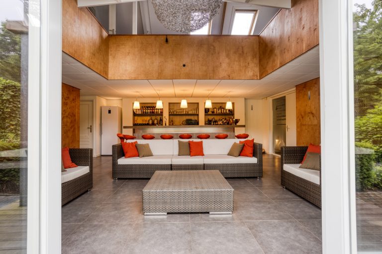 – Vanuit de bar kom je via openslaande deuren naar de tuin.