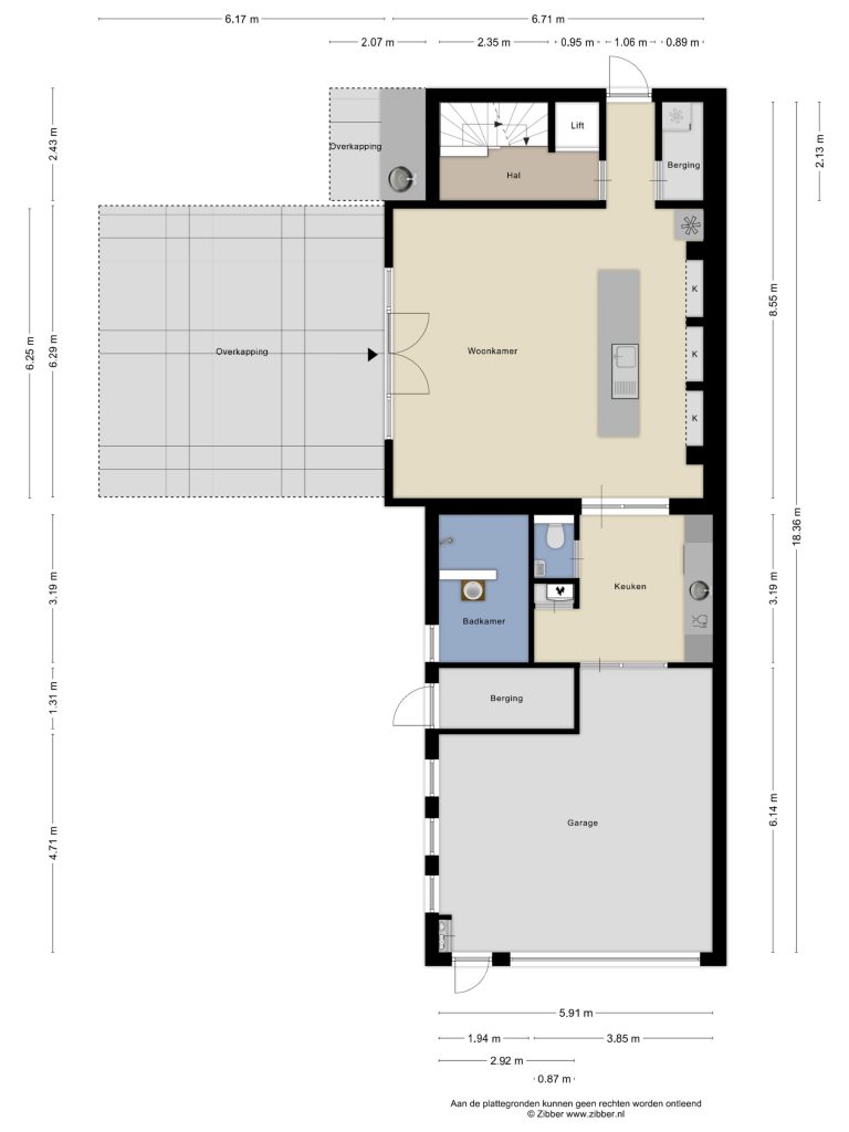 – Het bijgebouw bestaat uit verschillende onderdelen, waaronder een garage en berging