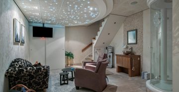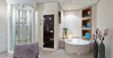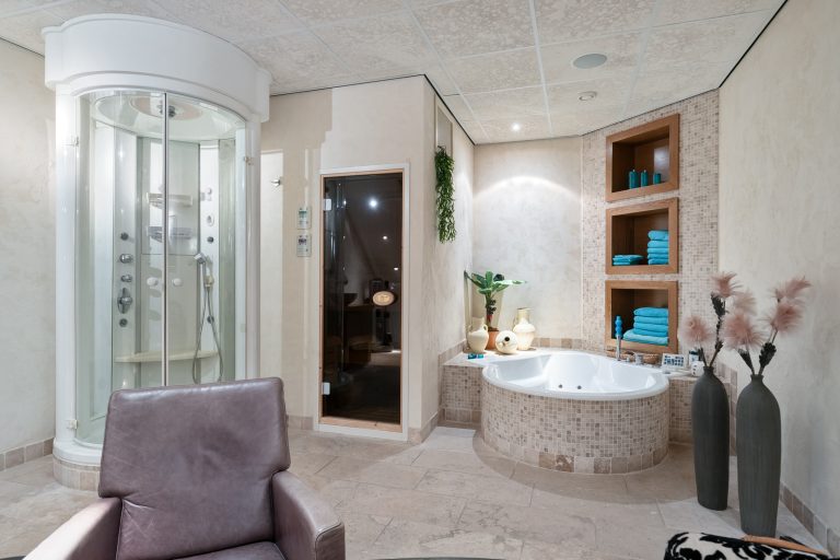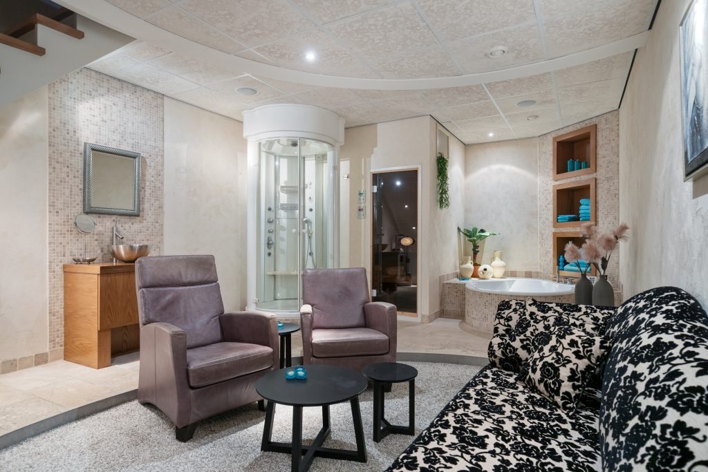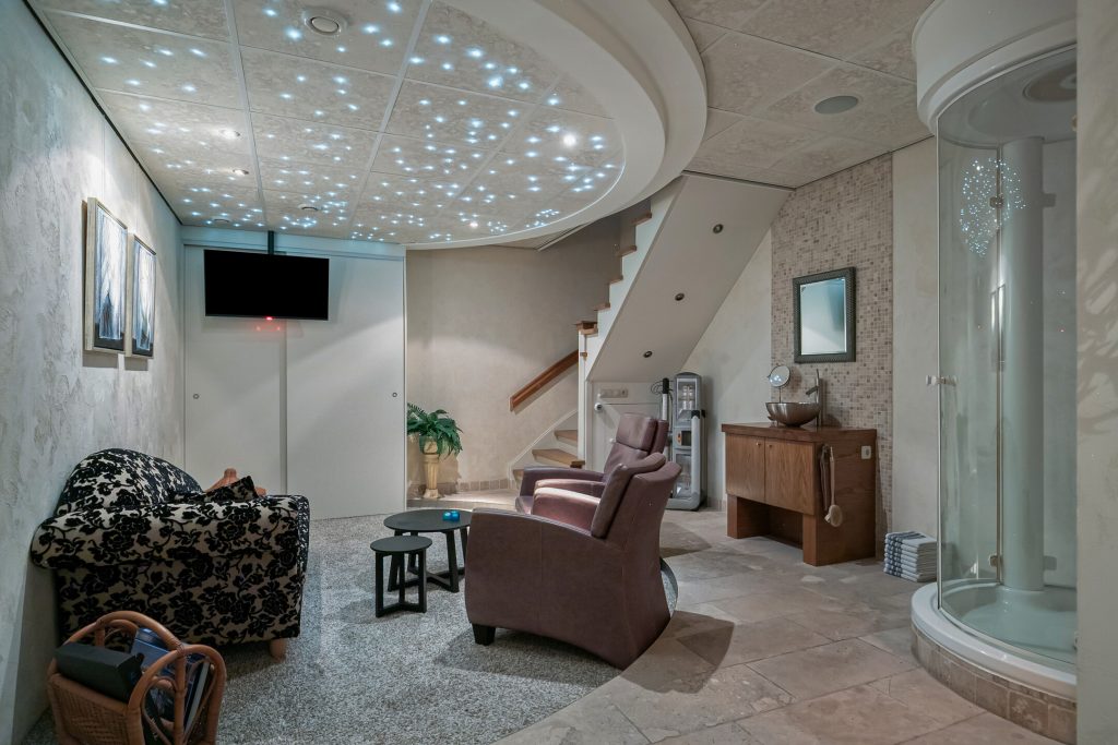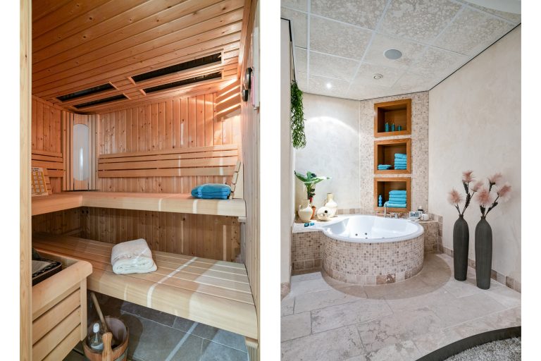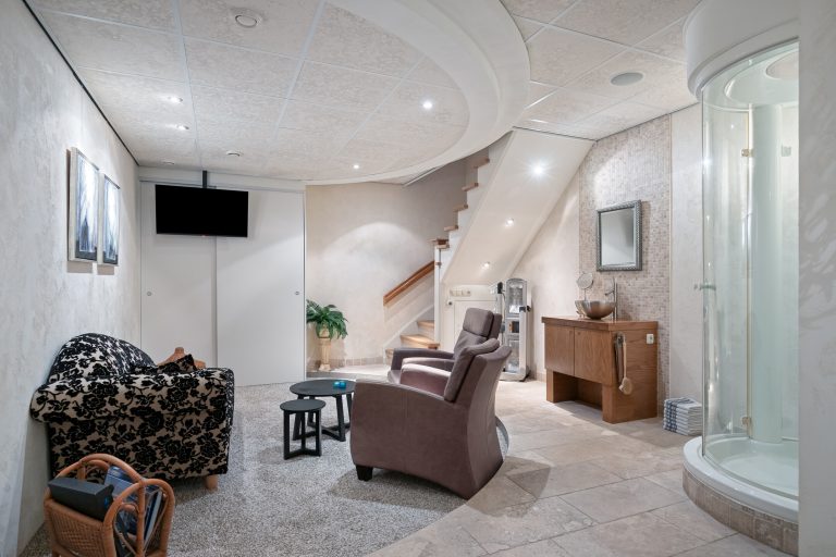 – In de kelder bevindt zich een prachtige welnessruimte met stoom-/douchecabine, Finse sauna met infrarood en bubbelbad
