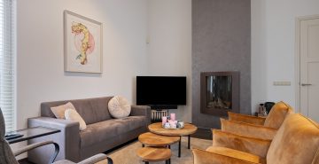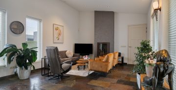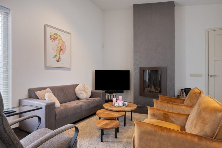 – Royale woonkamer met gashaard en openslaande deuren naar de serre