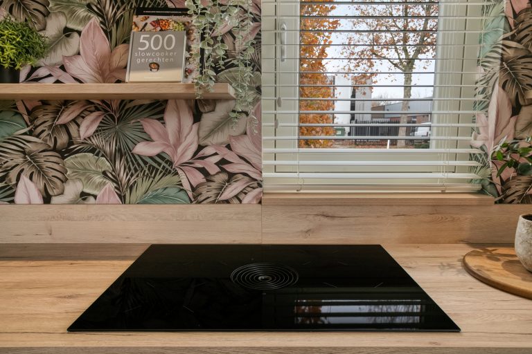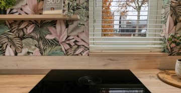 – Moderne open keuken (2023) met 4-pits inductie met Bora recirculatie afzuiging, een stoomoven, een combi-oven, een grote koelkast, een vaatwasmachine en een Quooker