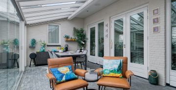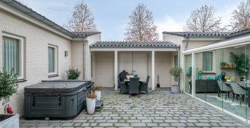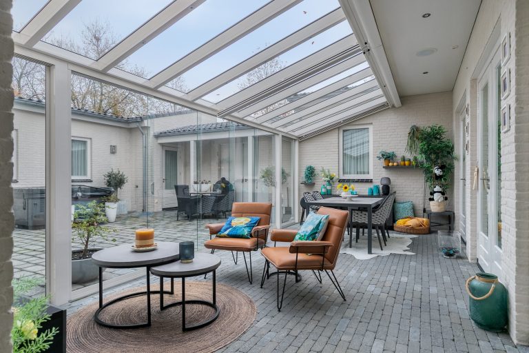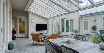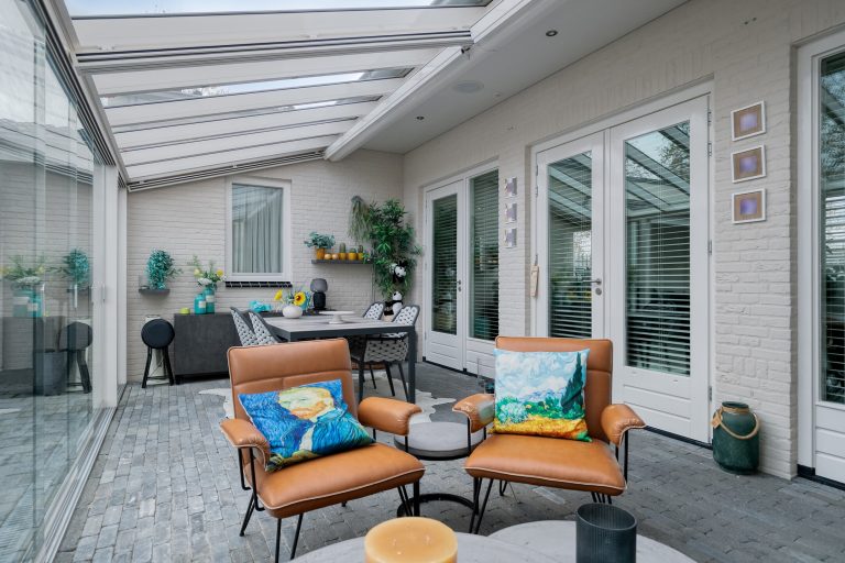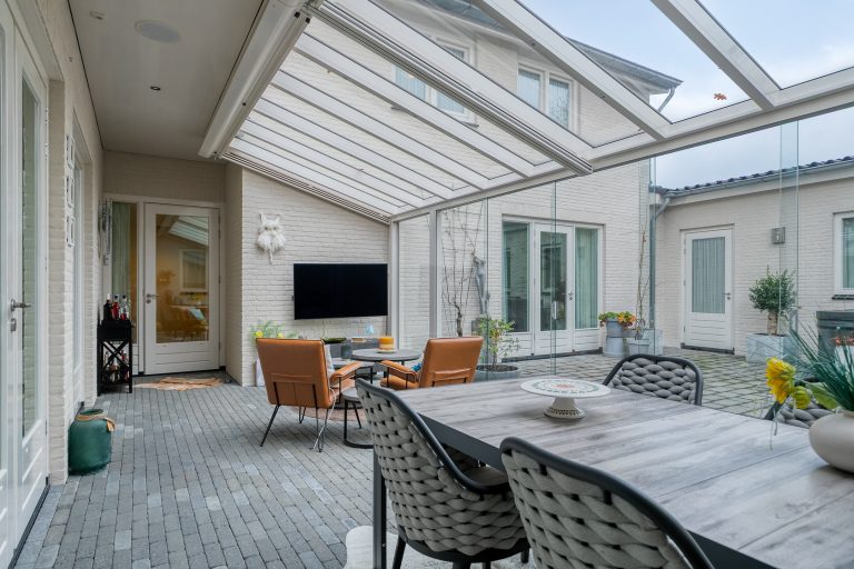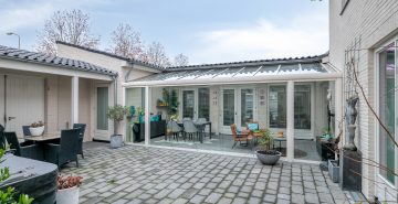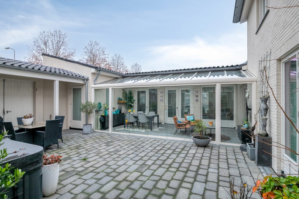 De tuin bij de woning is volledig omsloten en daardoor zeer privé. Hier kunt u op elk moment van de dag genieten van rust, privacy en beschutting, met de serre als heerlijke overgang tussen binnen en buiten.