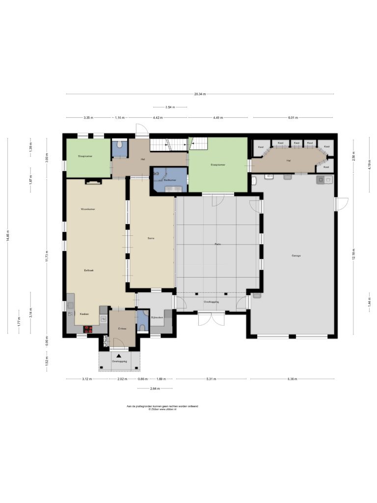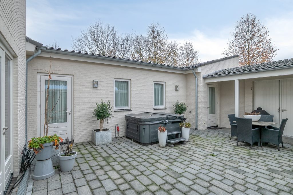 Op de begane grond zijn daarnaast een werk-/kantoor-/slaapkamer, een kledingkamer met ingebouwde kasten en een ruime slaapkamer met badkamer en-suite aanwezig. Deze badkamer is voorzien van een douchecabine en een dubbele wastafel met meubel. Vanuit deze slaapkamer heeft u direct toegang tot de prachtige wellness-ruimte in de kelder, uitgerust met een stoom-/douchecabine, Finse sauna met infrarood en een bubbelbad. Een luxe voorziening die iedere dag als een verwenmoment voelt. De inpandige garage biedt plaats aan maar liefst drie auto’s en maakt het wooncomfort helemaal compleet.