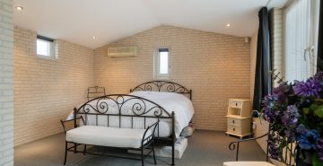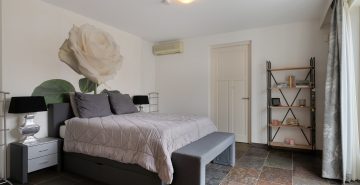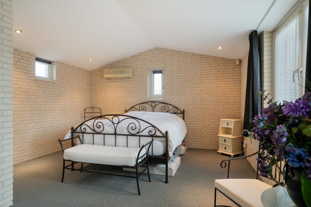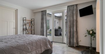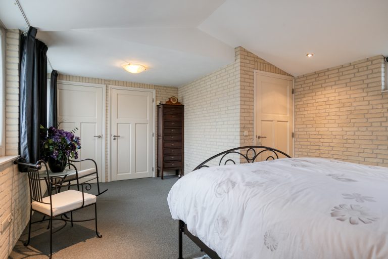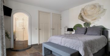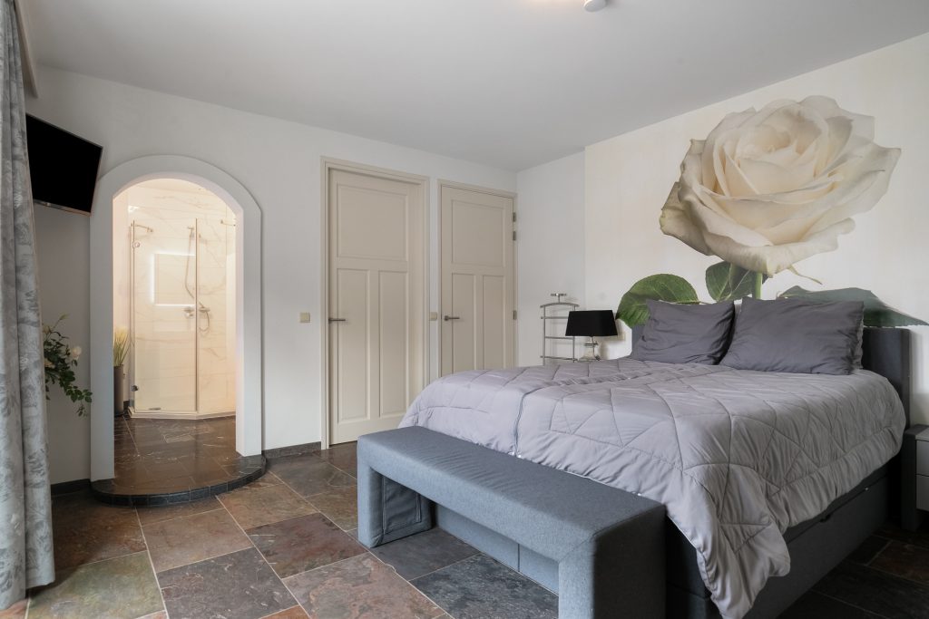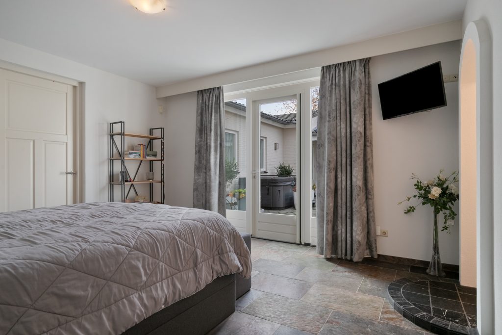 – Slaapkamer met badkamer en-suite en deur naar de welnessruimte in de kelder