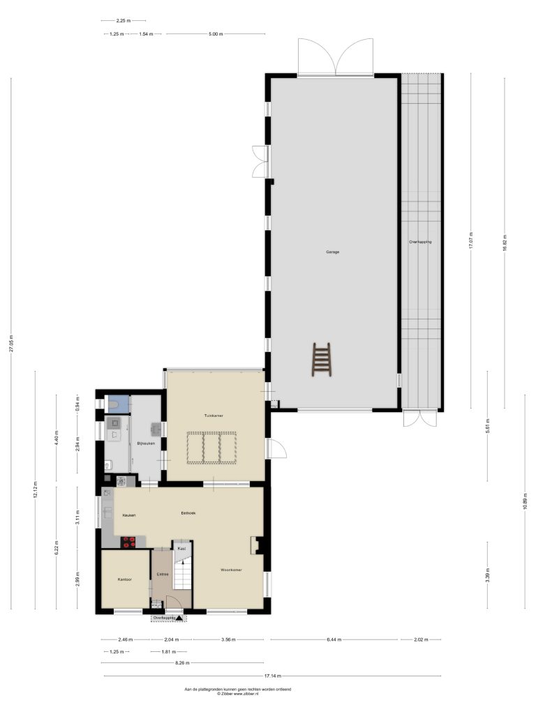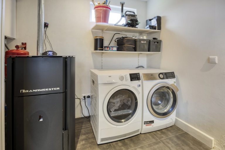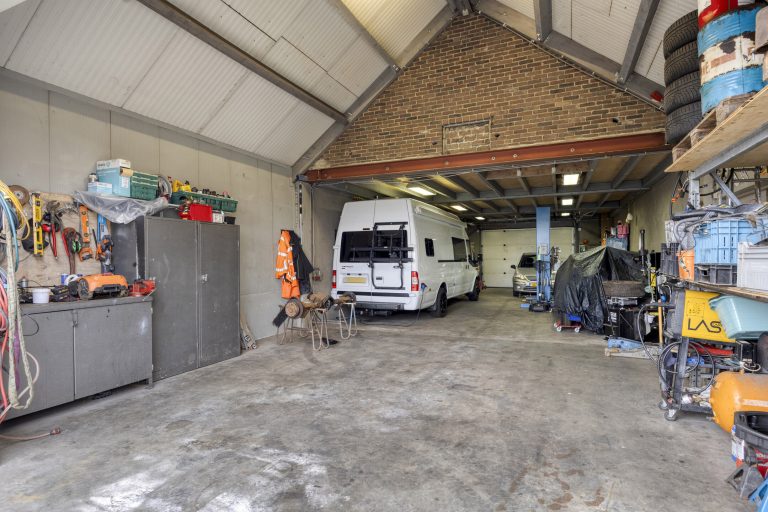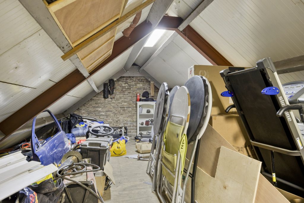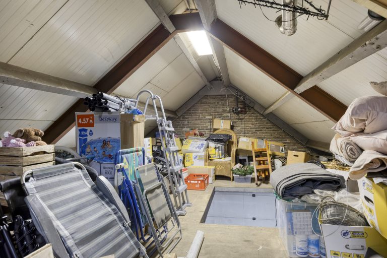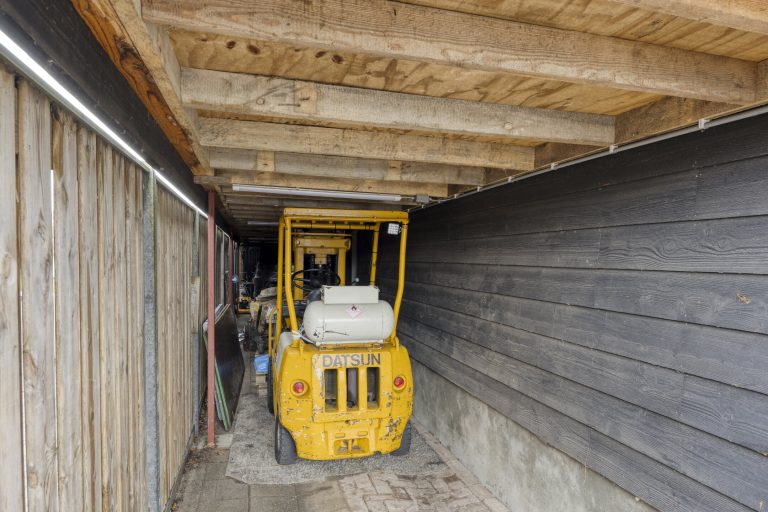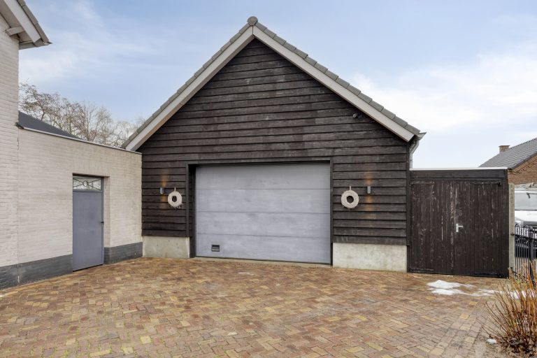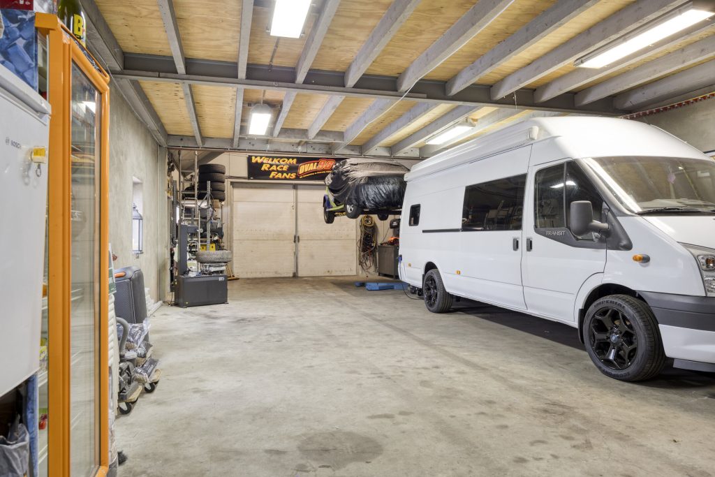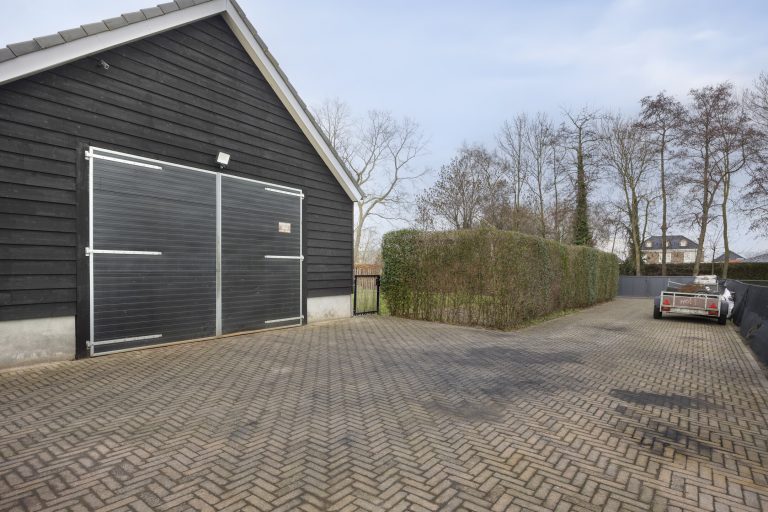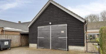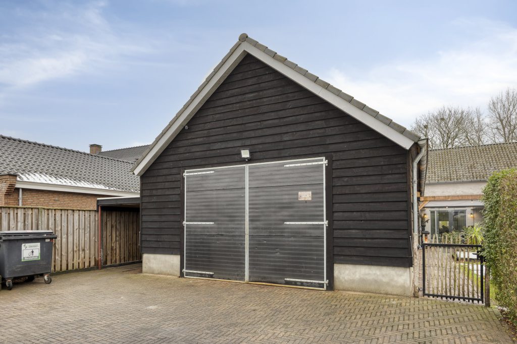 De vrijstaande garage/hal van maar liefst 108 m² biedt eindeloos veel mogelijkheden, bijvoorbeeld voor hobby, opslag of bedrijfsmatige activiteiten. De garage is voorzien van openslaande deuren met een hoogte van circa 2,9 meter en een elektrische sectionaaldeur met een breedte van circa 3,8 meter. De elektrische sectionaaldeur is te bedienen via een afstandsbediening. De garage is afgewerkt met een gevlinderde betonvloer, aangelegd in 2016. Daarnaast zijn er loopdeuren naar zowel de serre als de achtertuin. De ruimte is grotendeels geïsoleerd en voorzien van dubbel glas, water, elektra én krachtstroom. Daarnaast is er een praktische vliering voor extra opbergmogelijkheden.