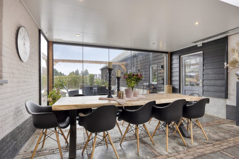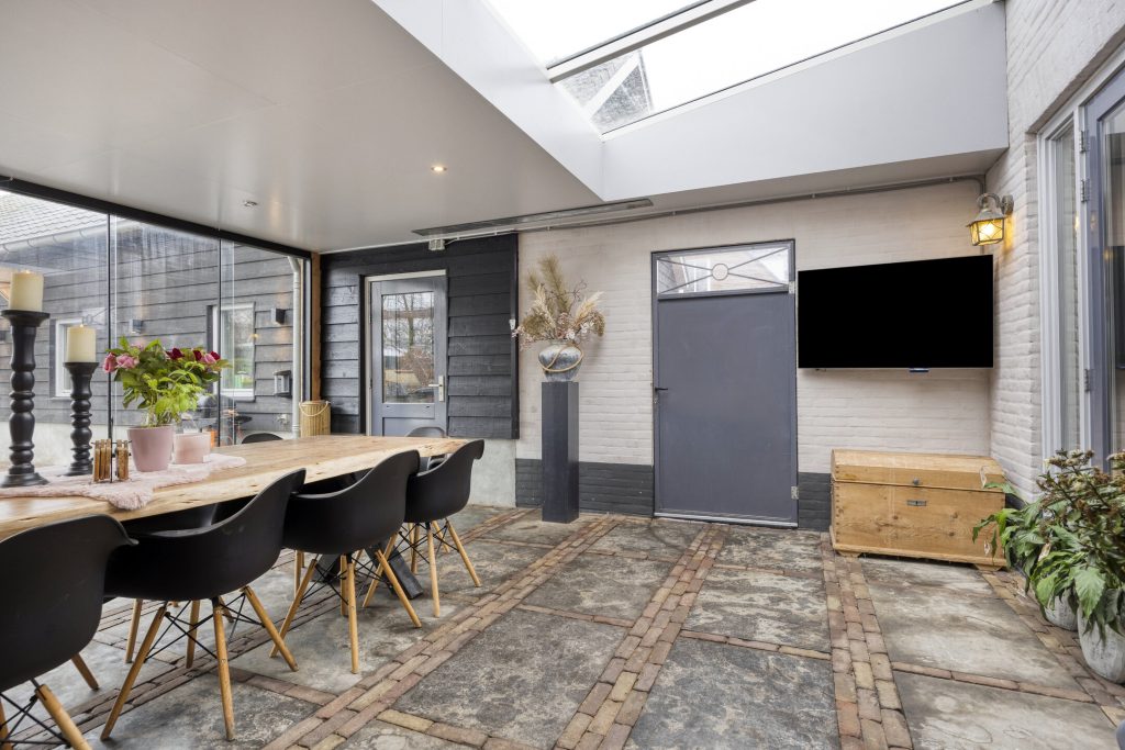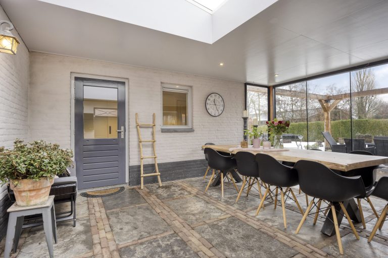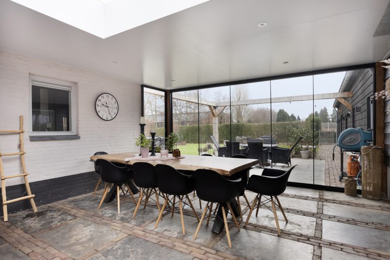 – Aangebouwde serre met glazen pui en lichtstraat